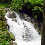 主人思いの犬の民話が残る仁保川の上流にある犬鳴の滝。また近くには種田山頭火の句碑もあります。