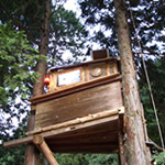 嘉村礒多生家の隣の高台にある「笑う木小屋」。自然の中で遊び、石釜を使ったパンやピザ作りなど、のんびりとした時間の中で、周辺の自然を活かした笑顔あふれる体験が楽しめます。