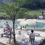 県道柿木山口線沿い。仁保川の清流を利用したプール。